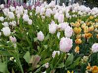 | パークへ戻ってくるとちょっとお散歩。桜が咲き始めまだチューリップが咲いていました。 |